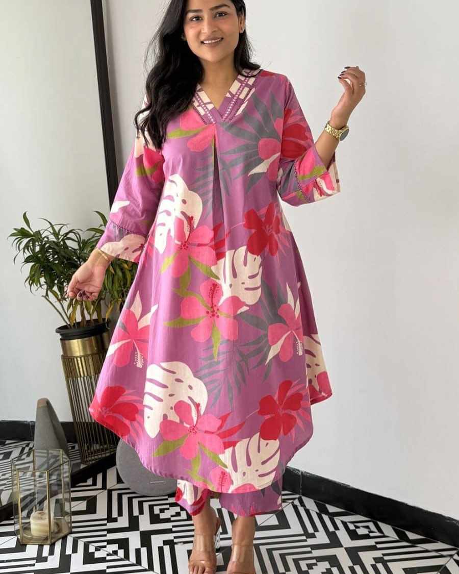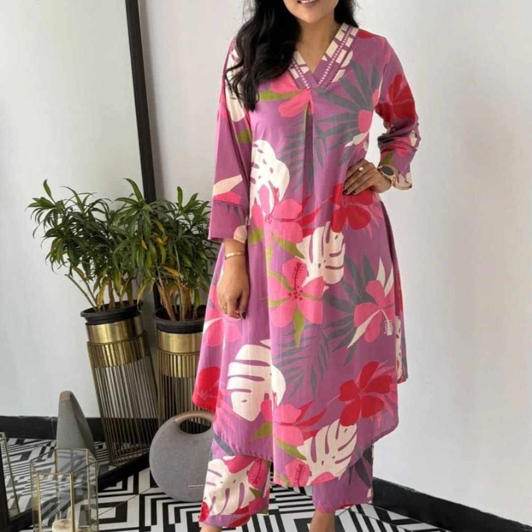 SF 2JU Beautiful Best Cotton Printed Cord Set Dress 717