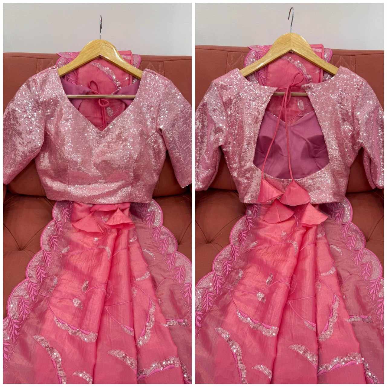 Name : SP 19 Pink Gold Crush Sequnce work Saree