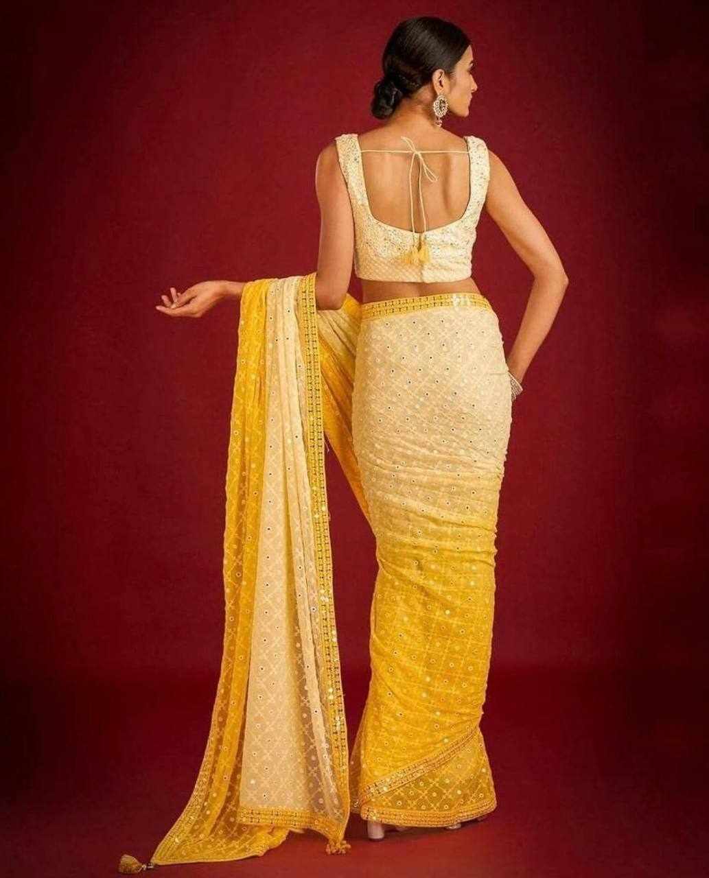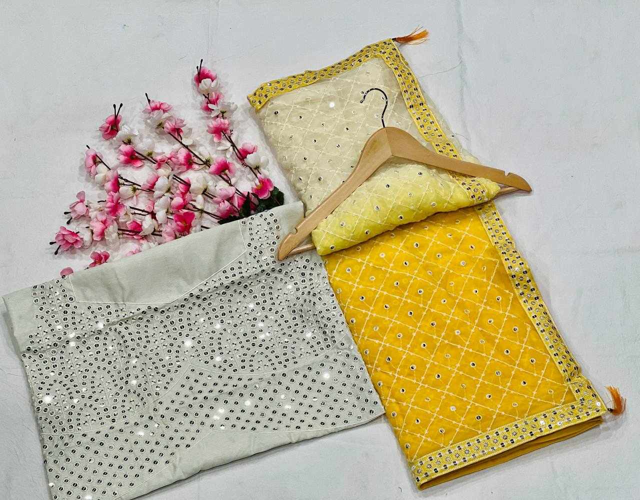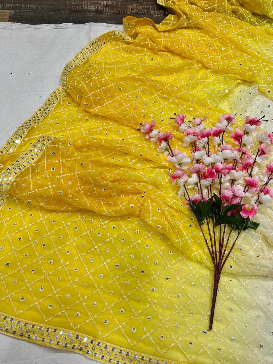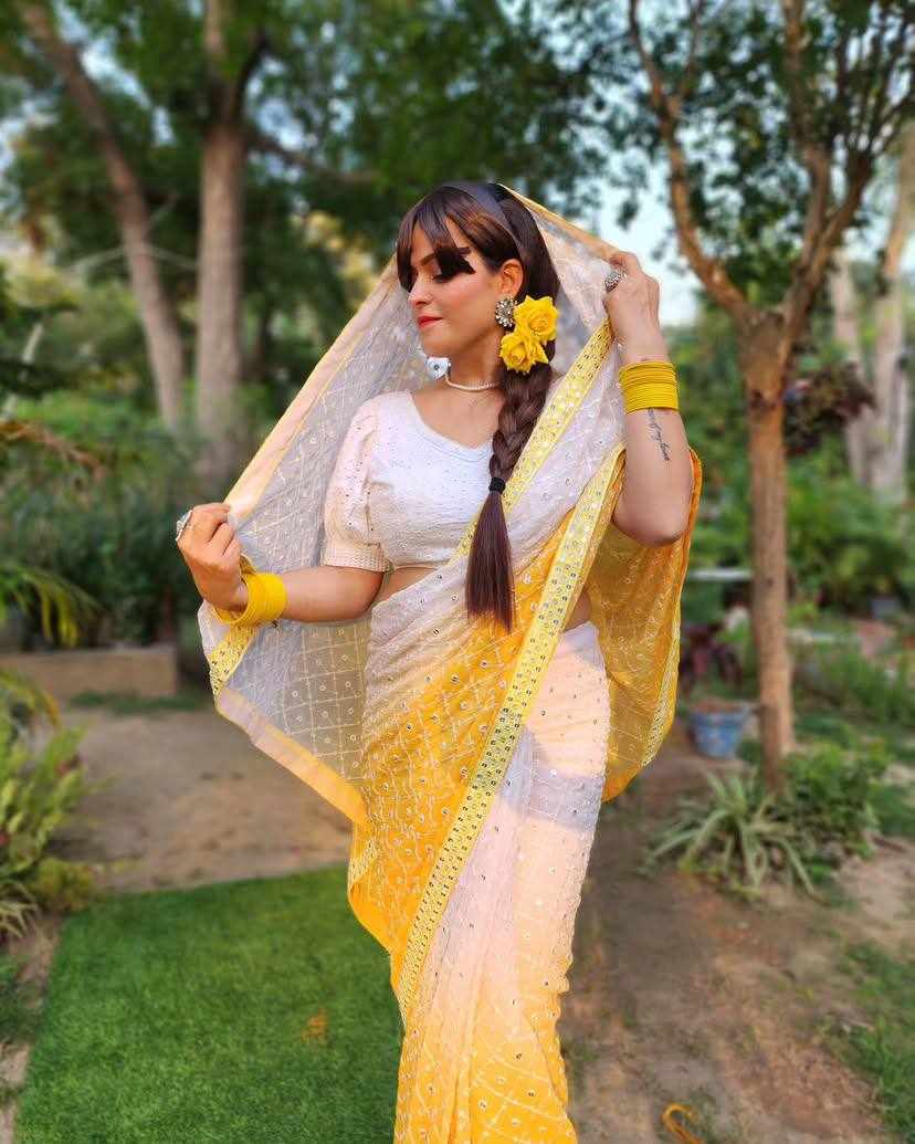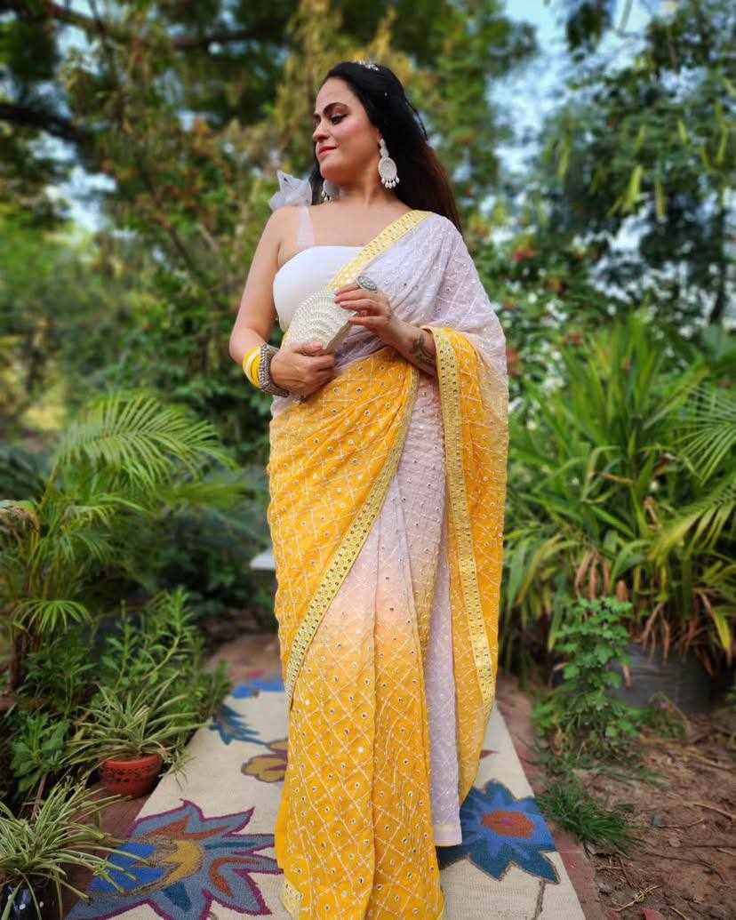 FABRIC: Heavy Fox Georgette With Pedding Print And 7.MM Sequence + Multi Work In Allover Saree