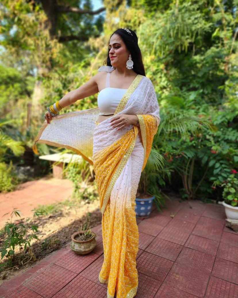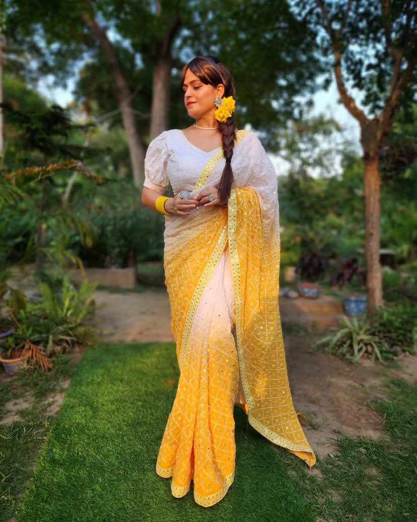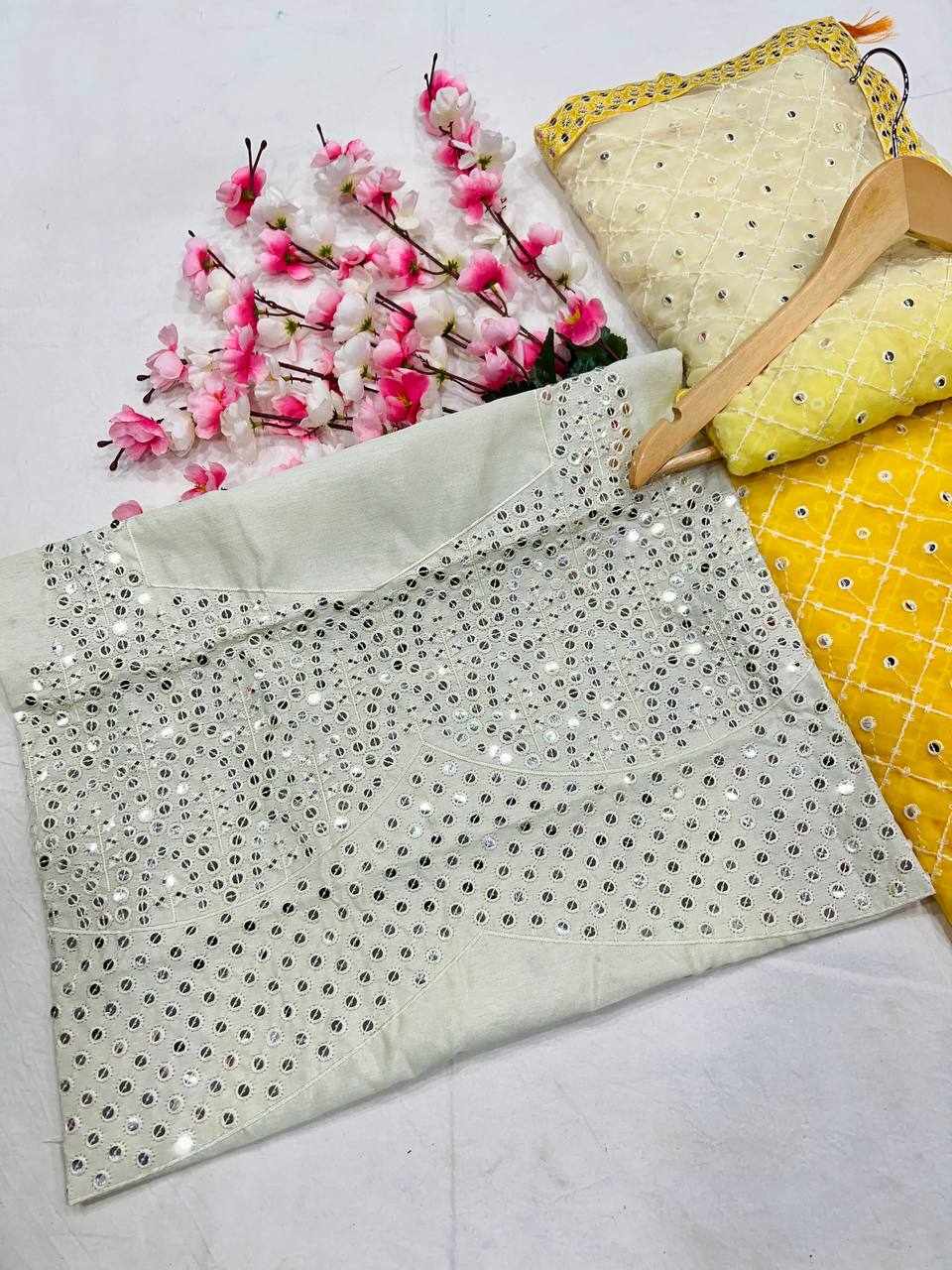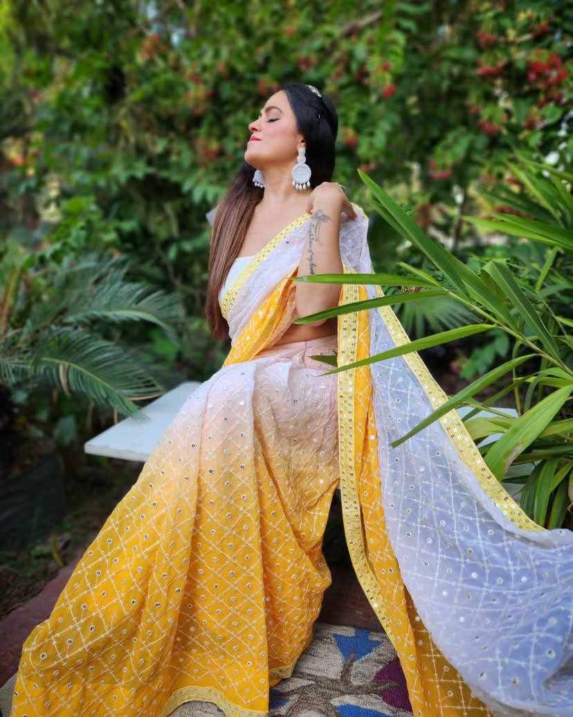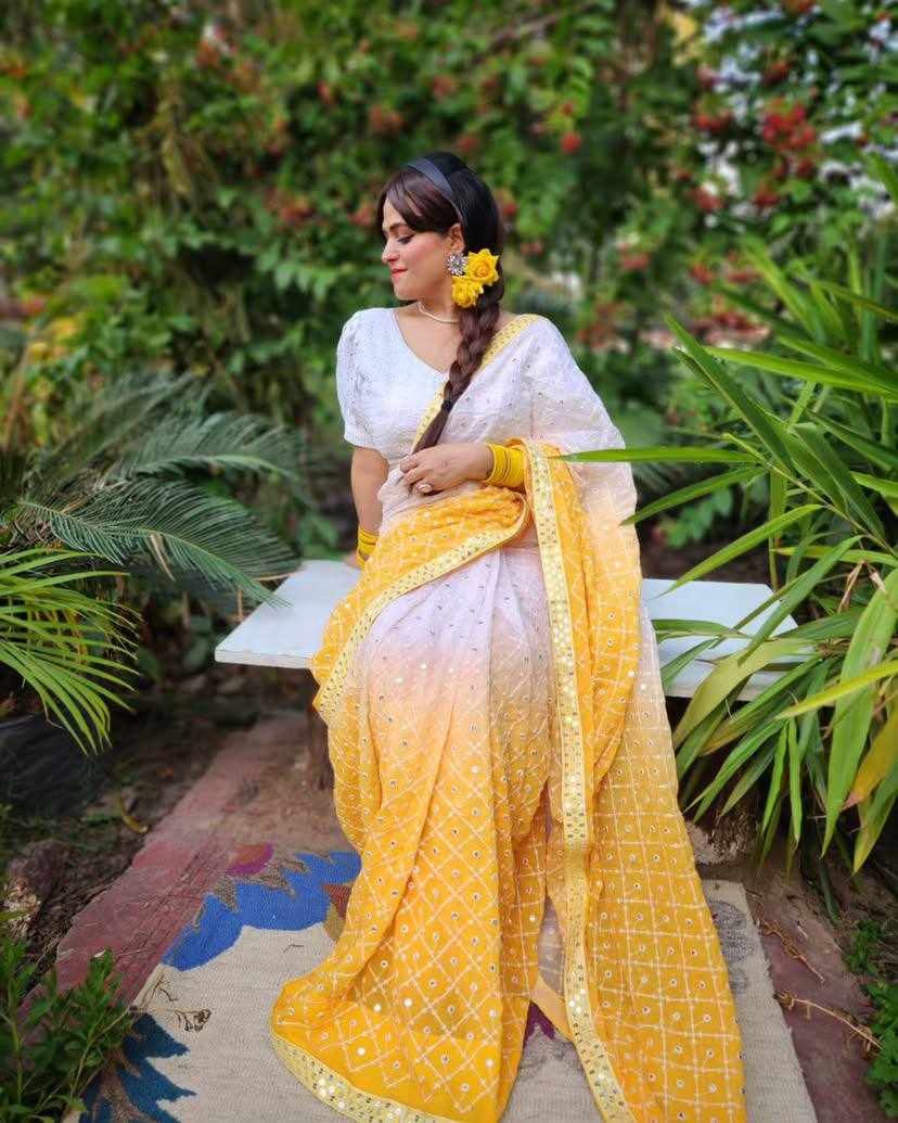 FABRIC: Heavy Fox Georgette With Pedding Print And 7.MM Sequence + Multi Work In Allover Saree