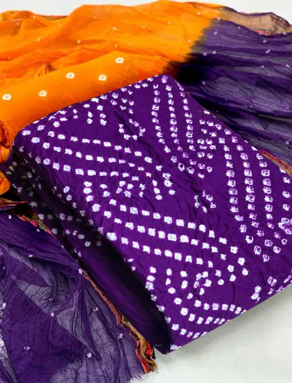 KT KASHTI Wine Pure Satin Cotton Bandhni Dress Materail has been successfully added to your cart .