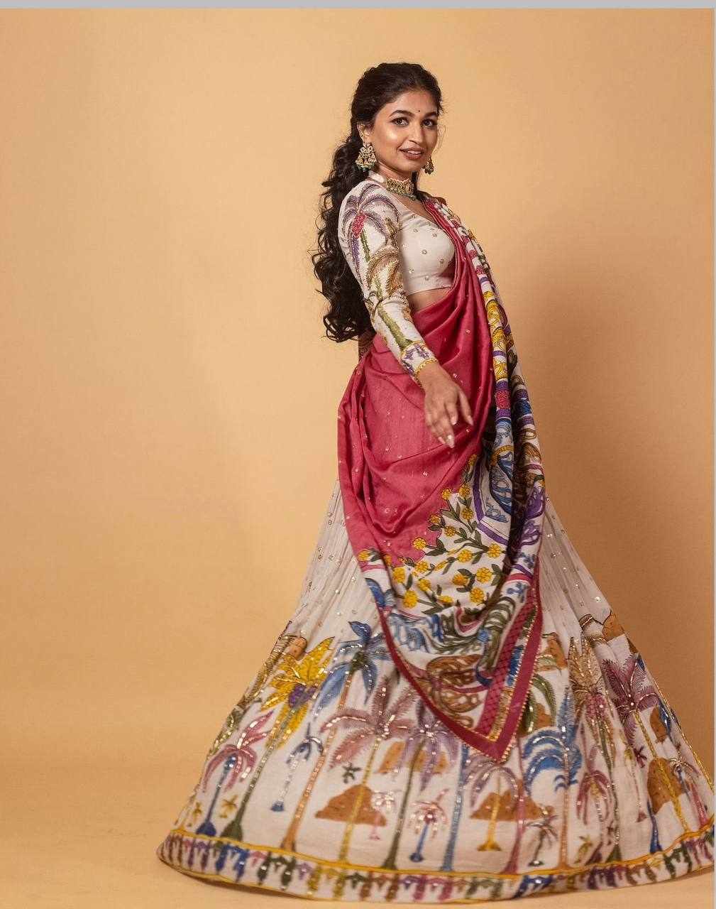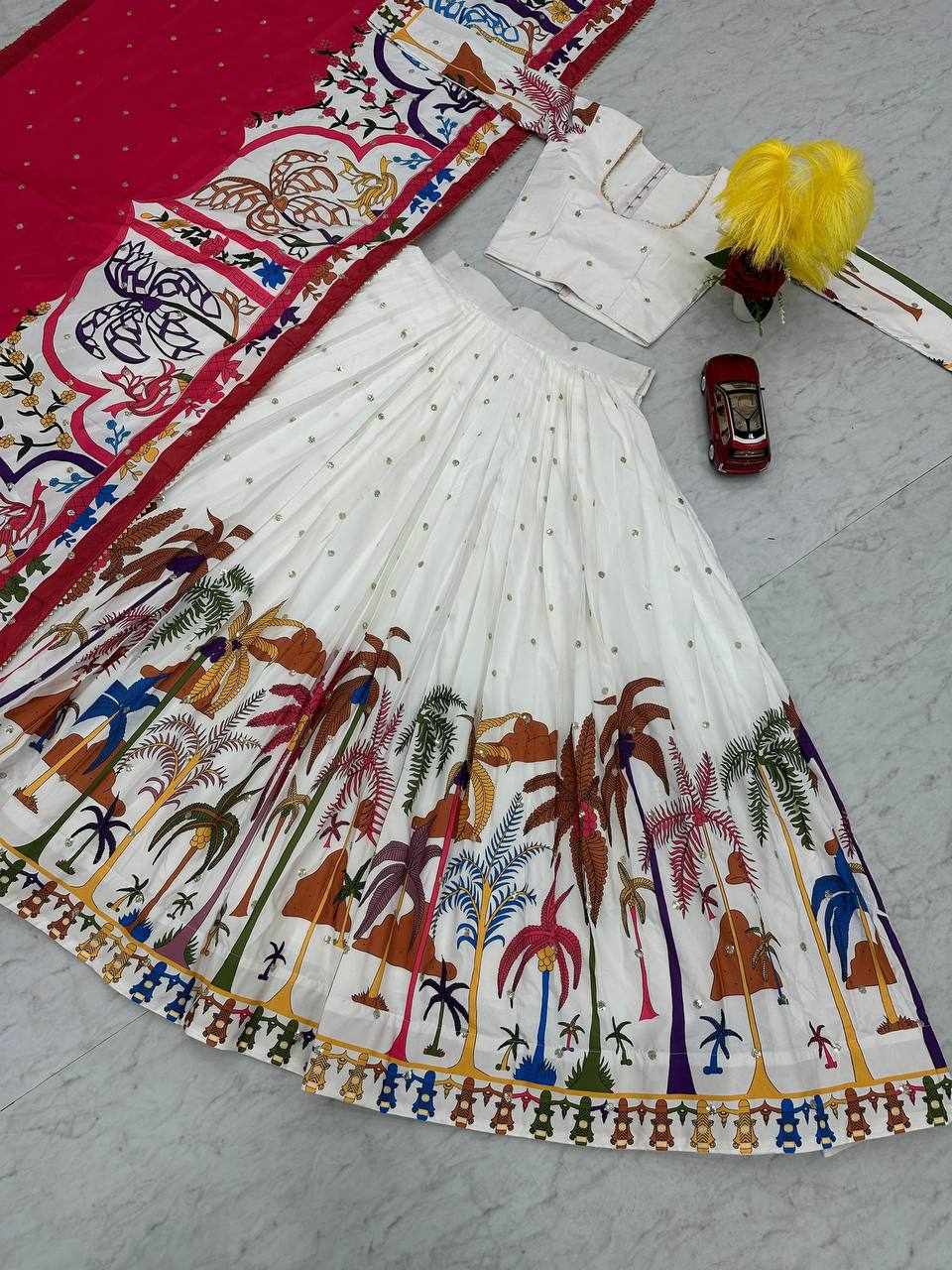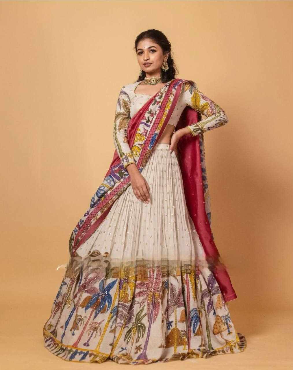 | Name : | PC 456 White Chent Crep Kalamkari Print Lehenga |