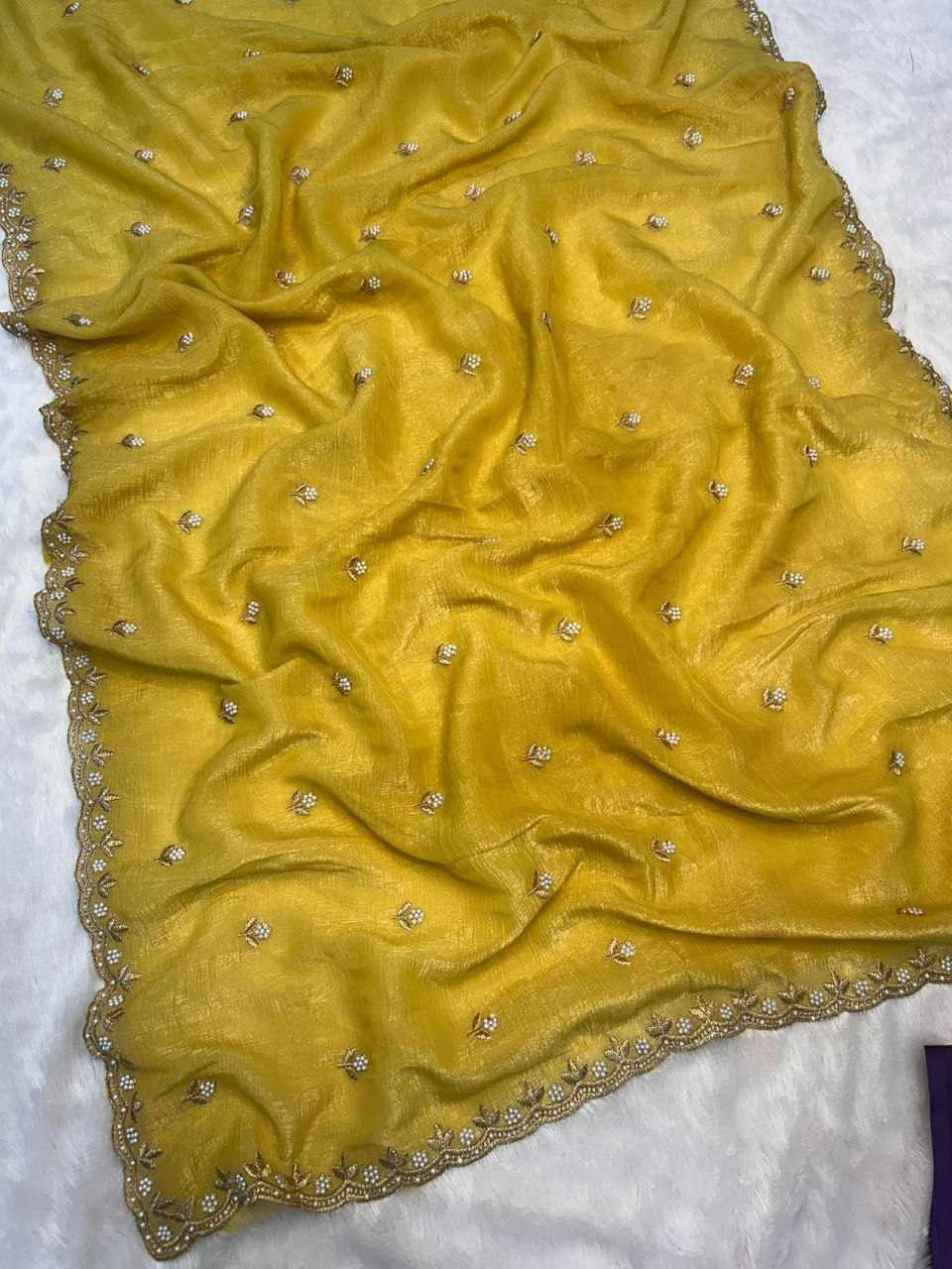 | Name : | RC Mustard Chiffon Crush Silk Saree |