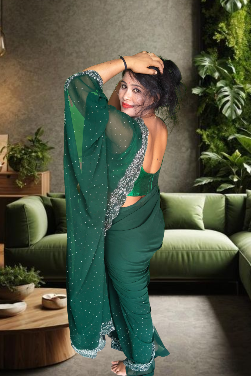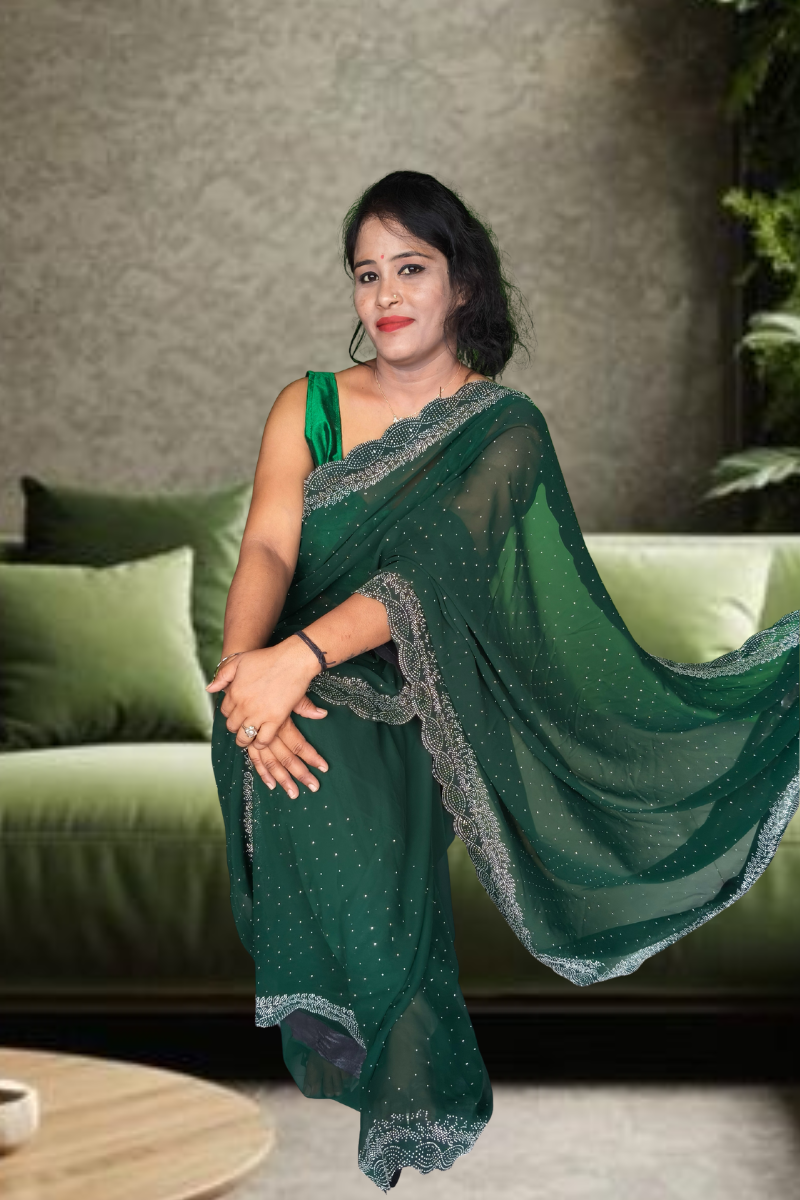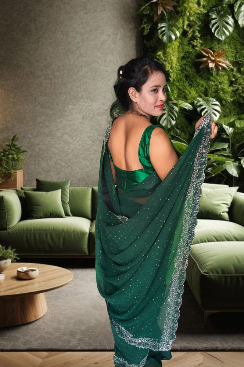 | Name : | S4s Green Karishma Siroski Stones Lace Georgette Party Wear Saree |