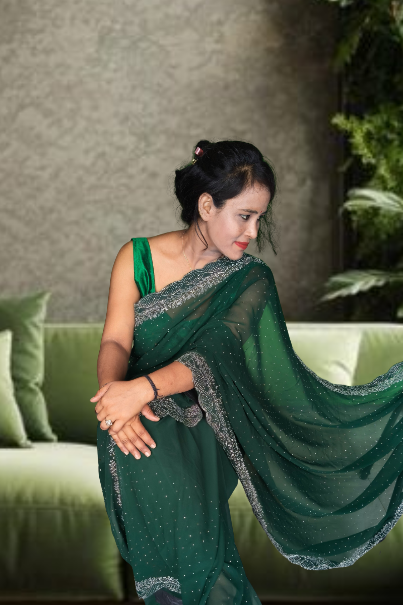 S4s Green Karishma Siroski Stones Lace Georgette Party Wear Saree