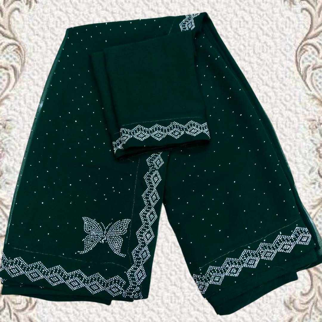 Reviews for S4s Green Siroski Butterfly Stones Lace Georgette Party Wear Saree