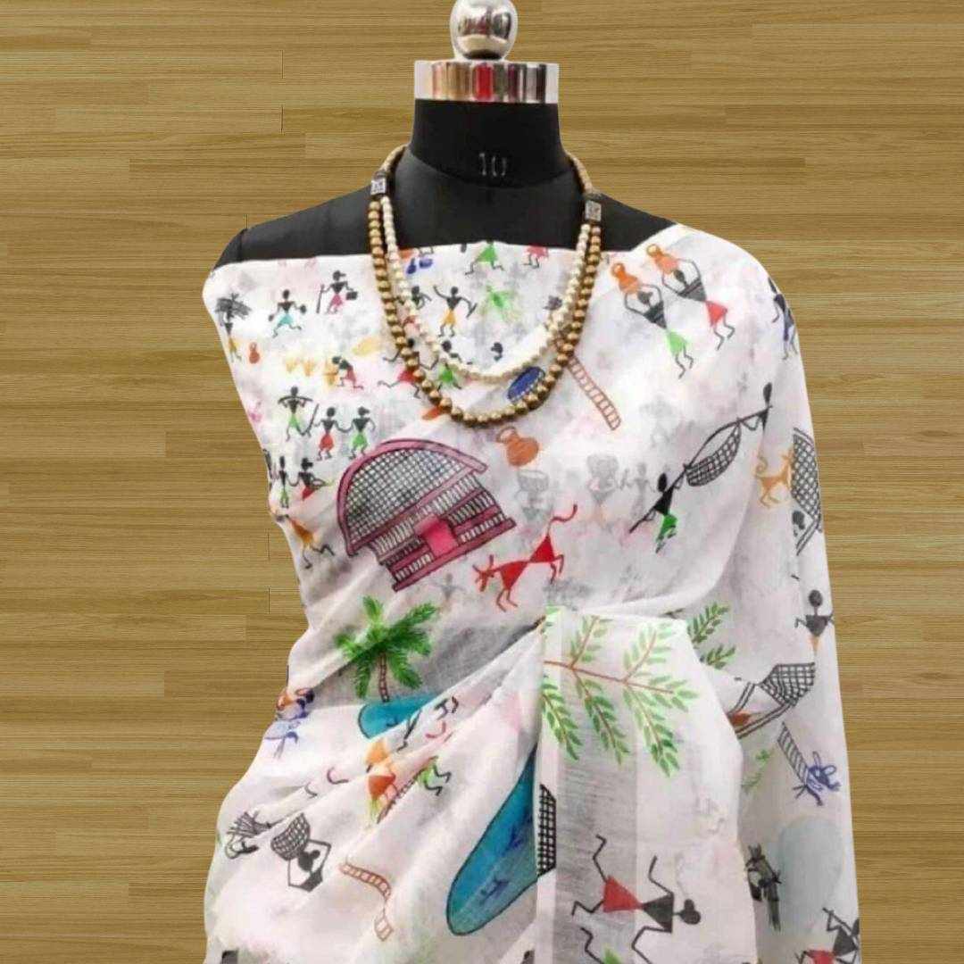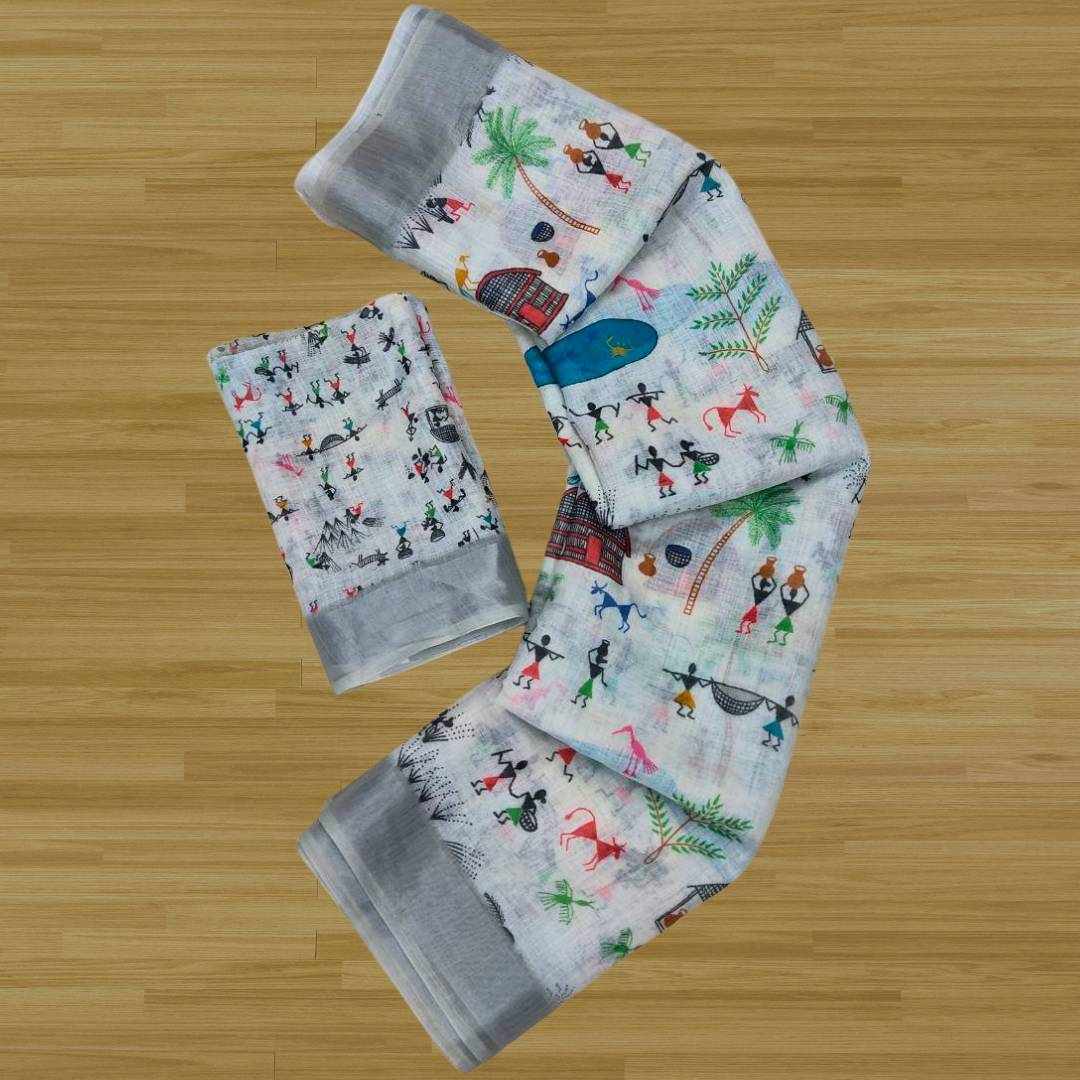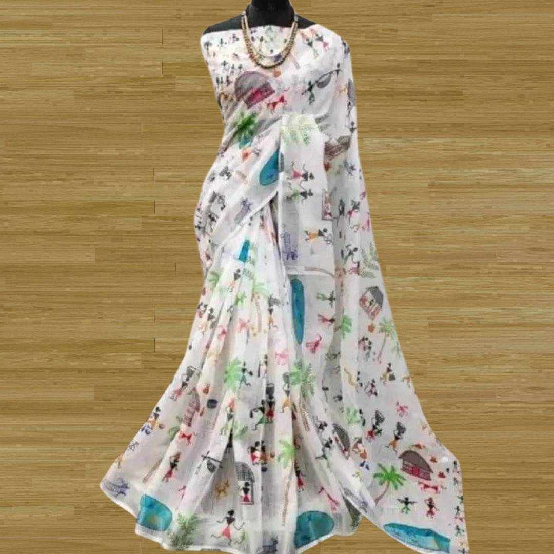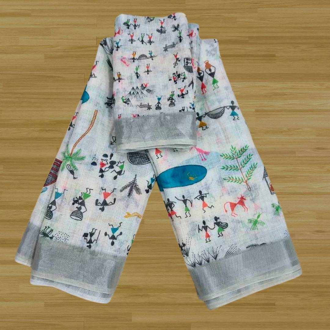 | Name : | S4S Linen White Dancing Human Digital Print Cotton Saree |