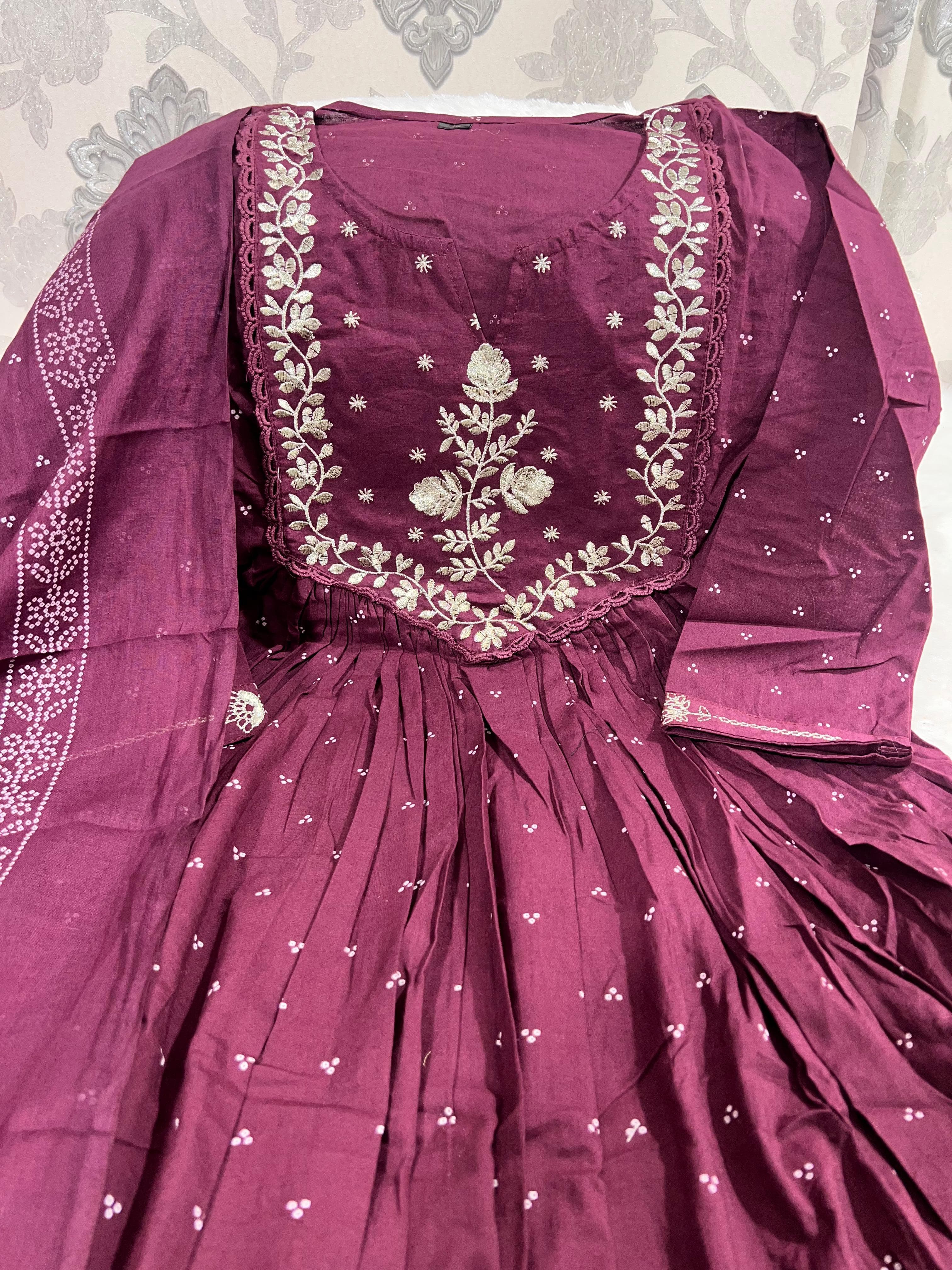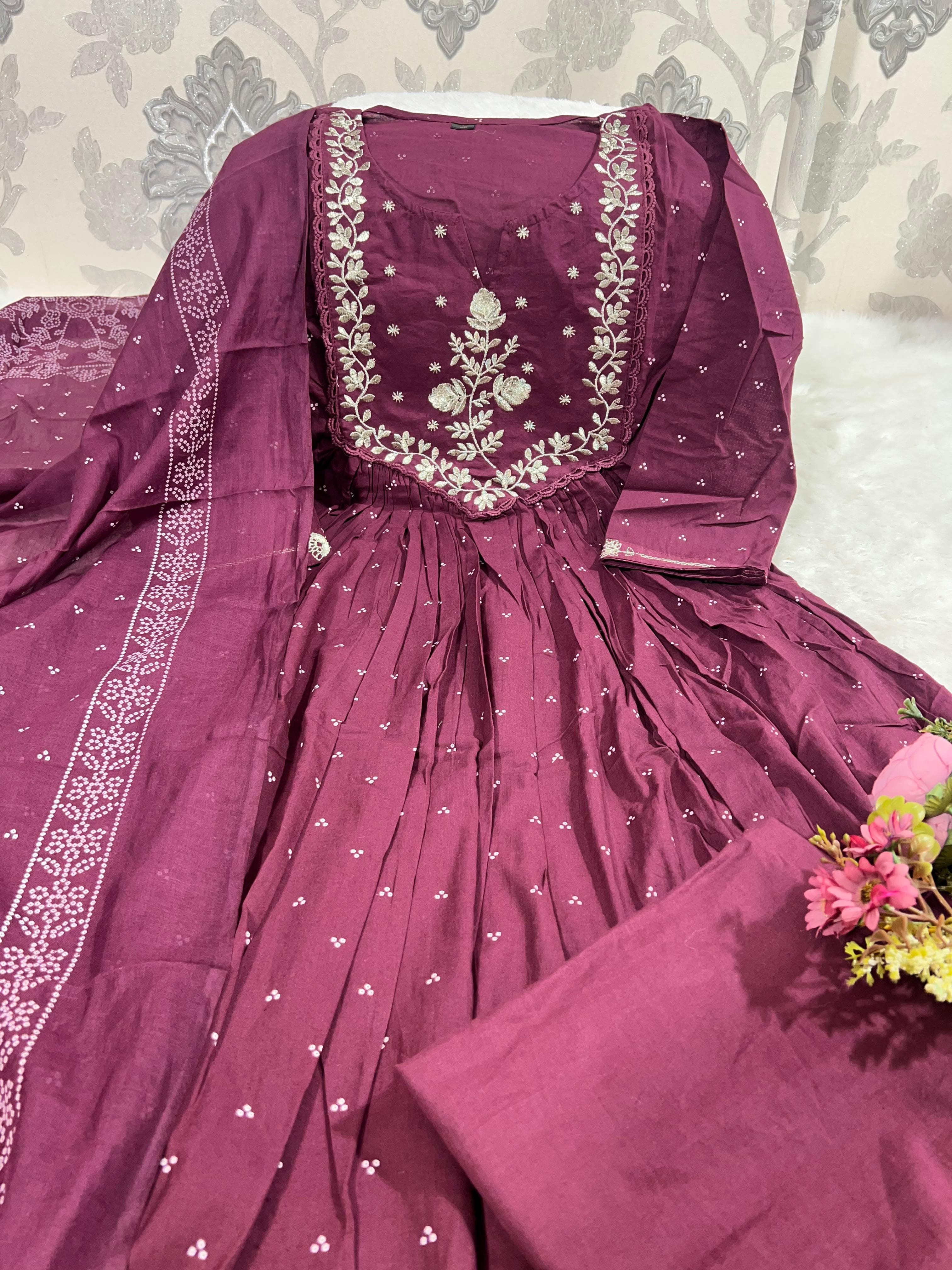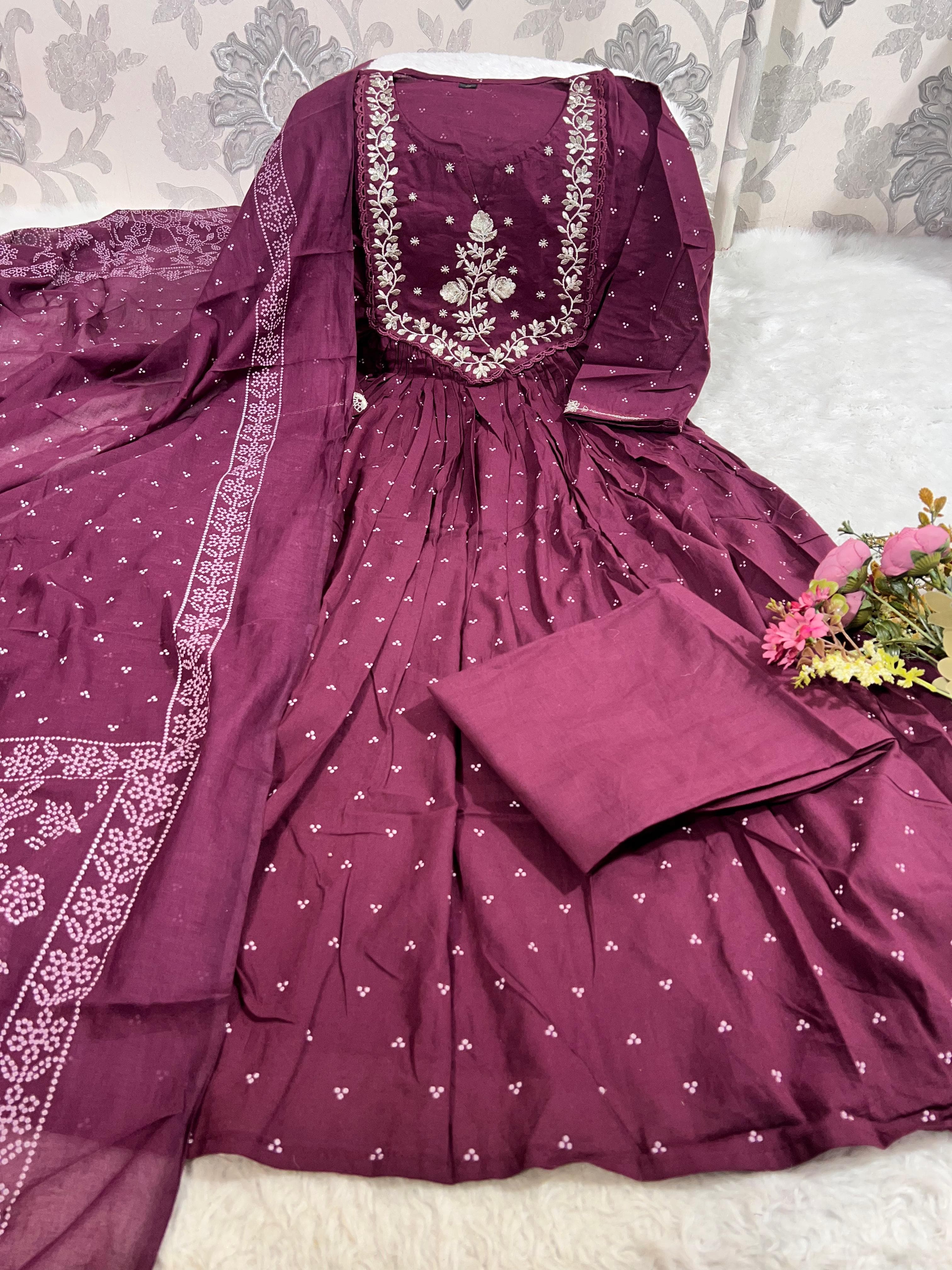 SF 18JUN Anarkali kurta set with Cotton Pant & Malmal Dupatta