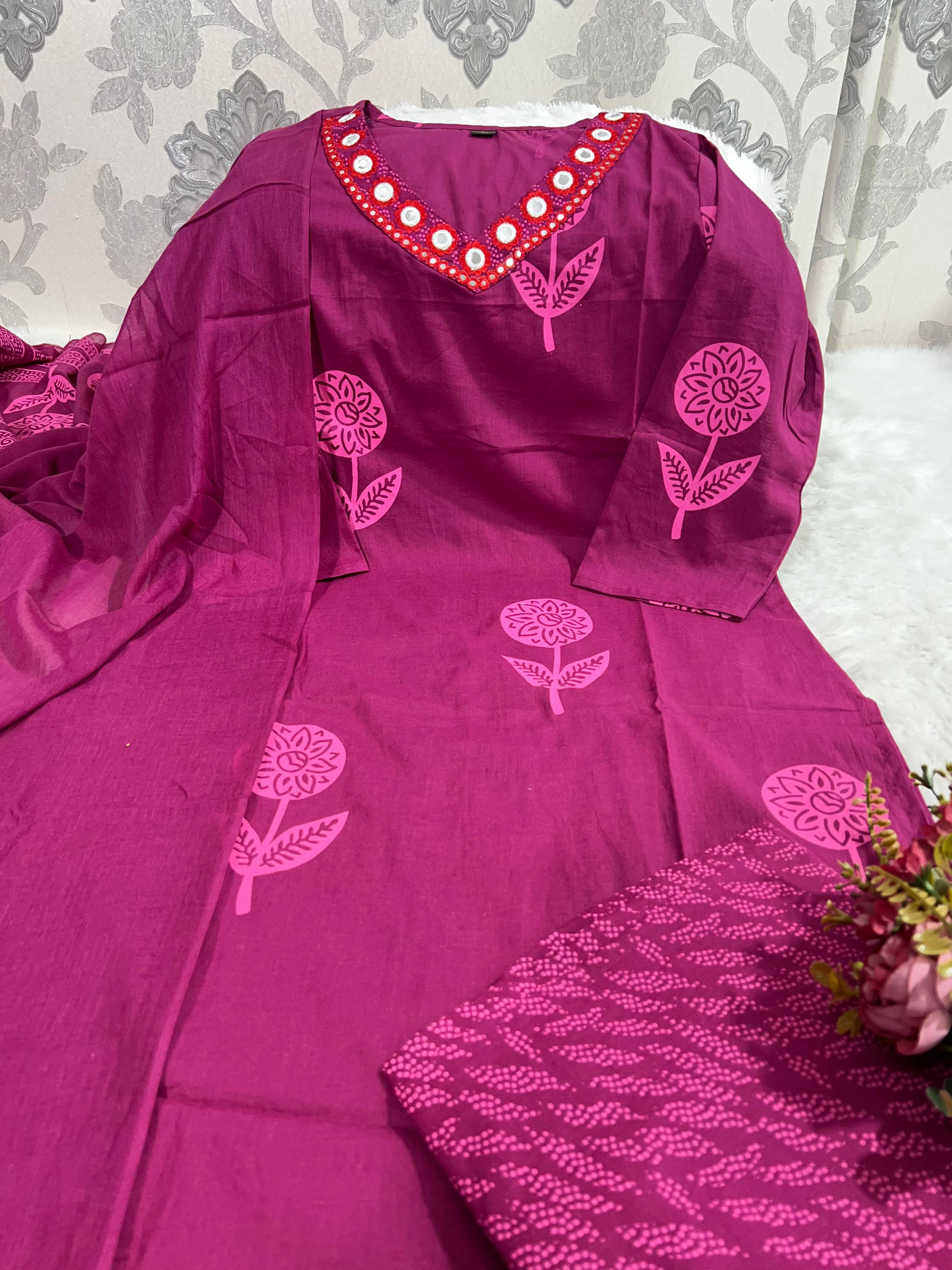 SF 31 Pure Fine Cotton Fabric Embroidery Work Kurti with Pant 558