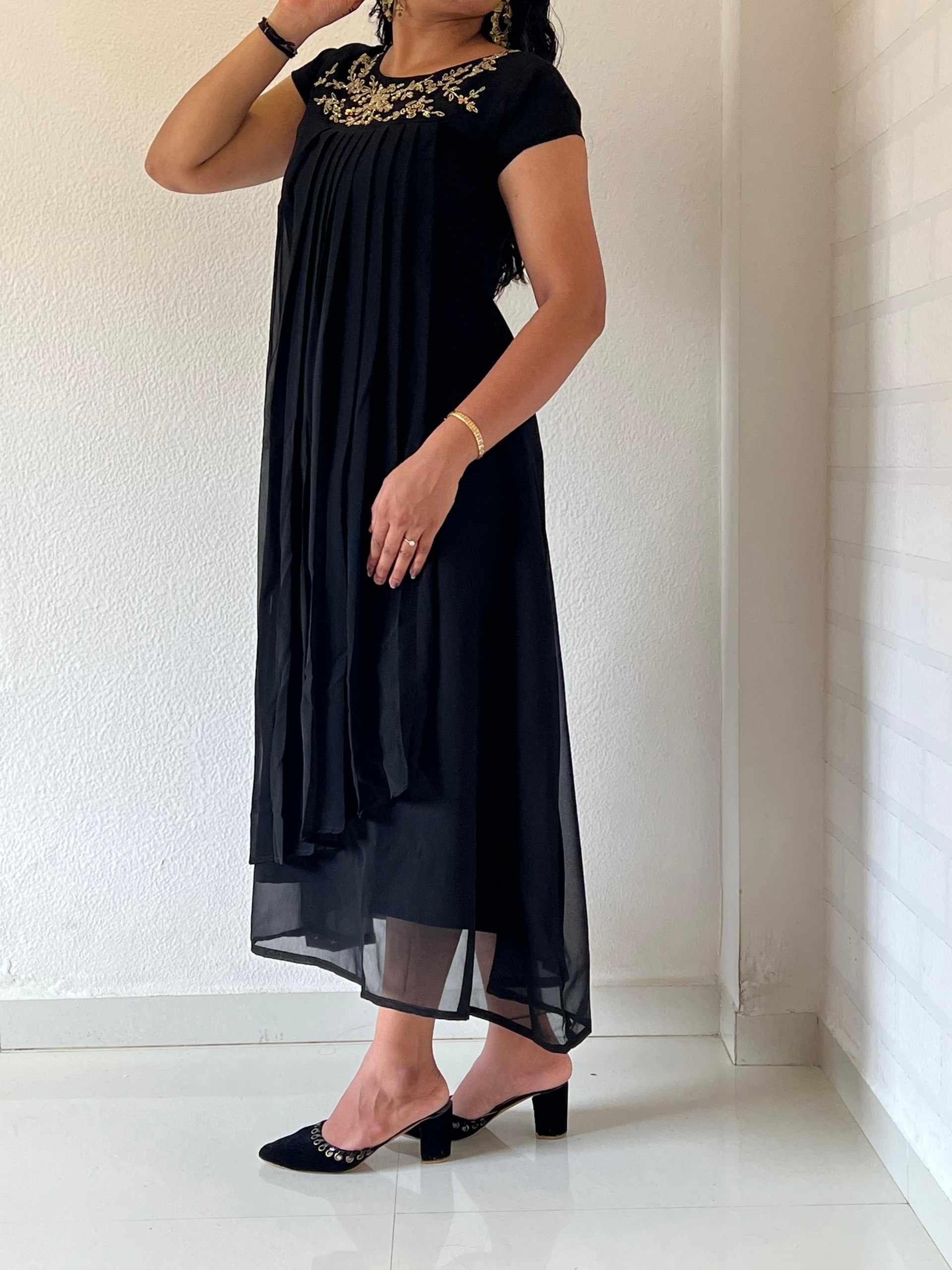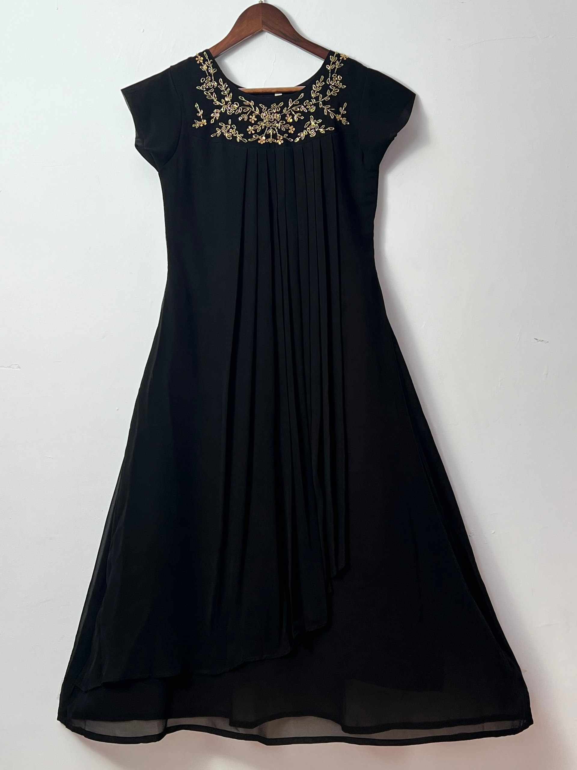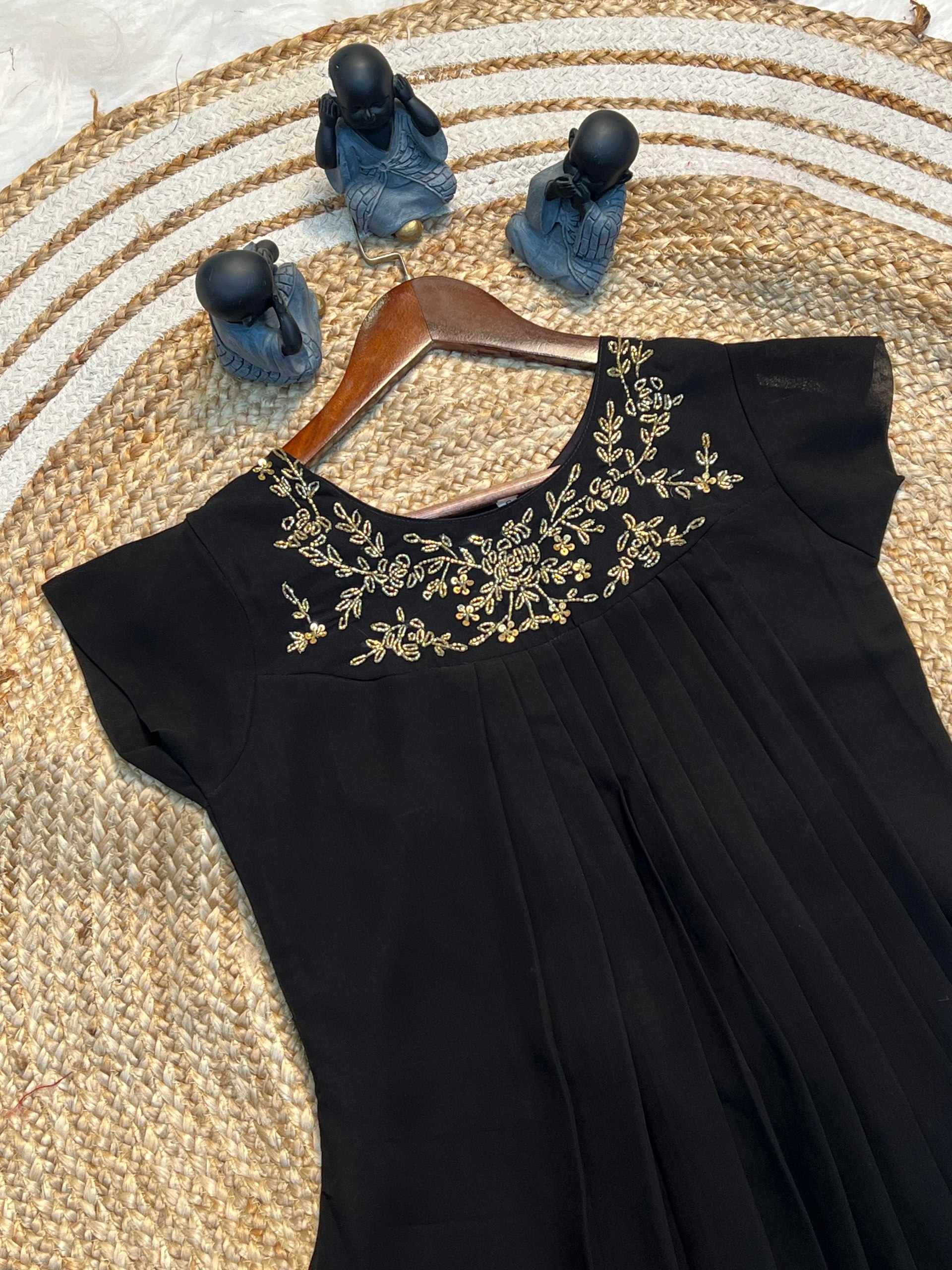 Name : WM13 BLACK BLOOMING GEORGETTE DESIGNER KURTI