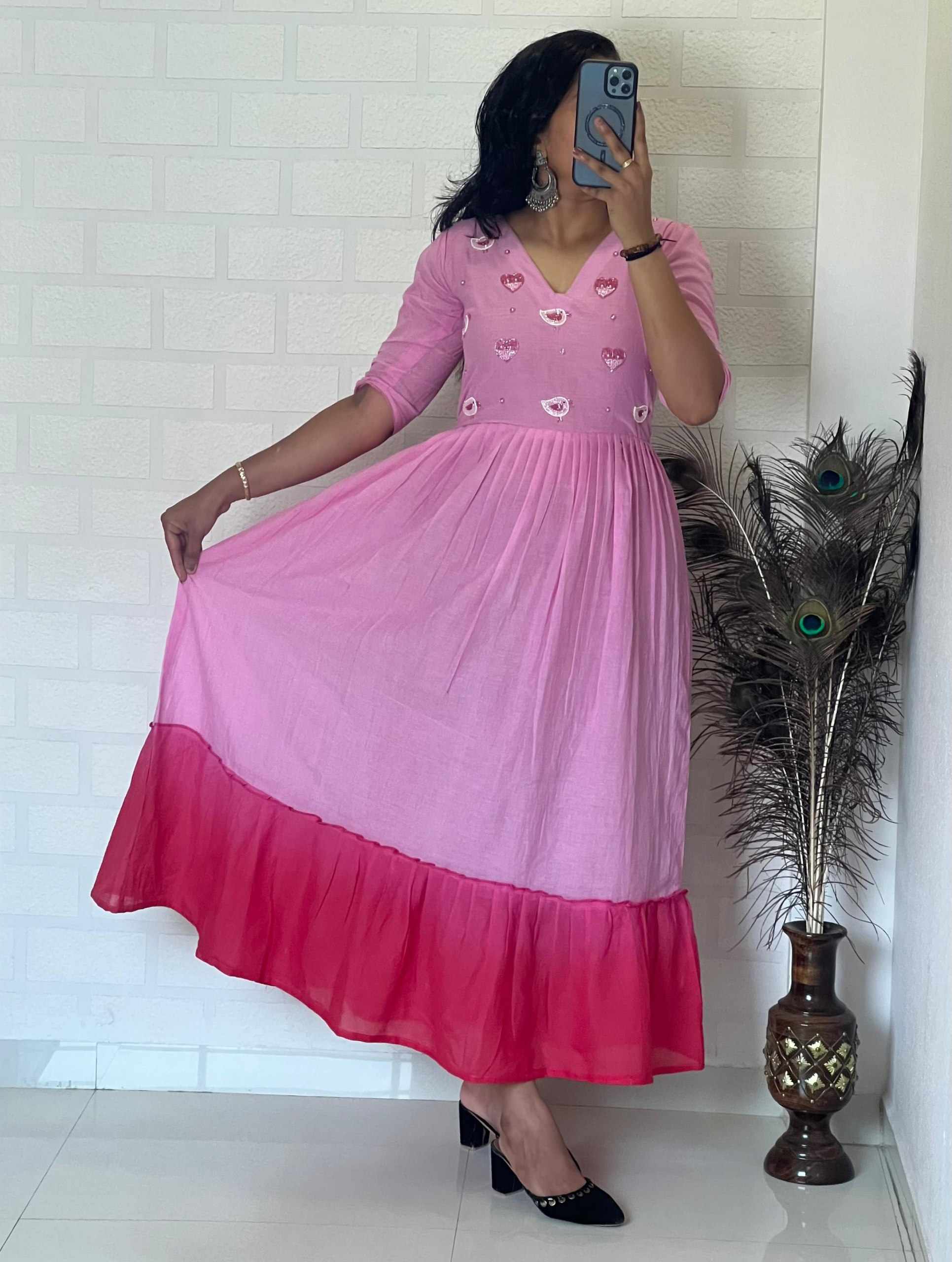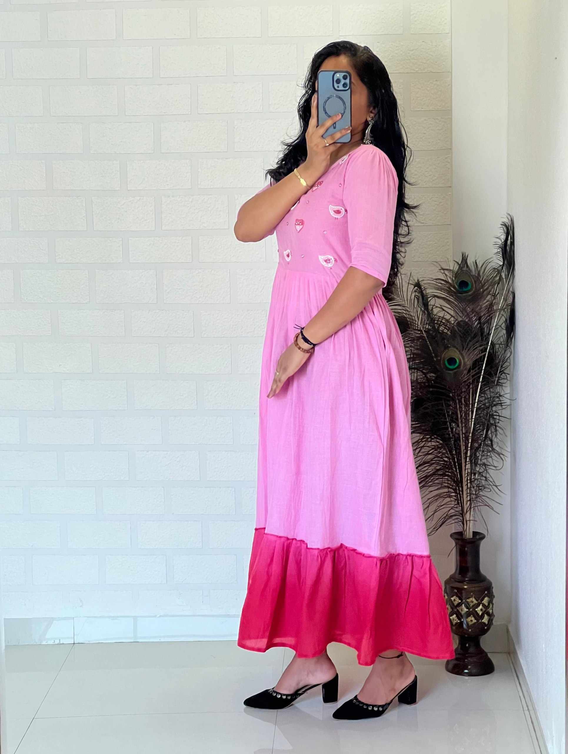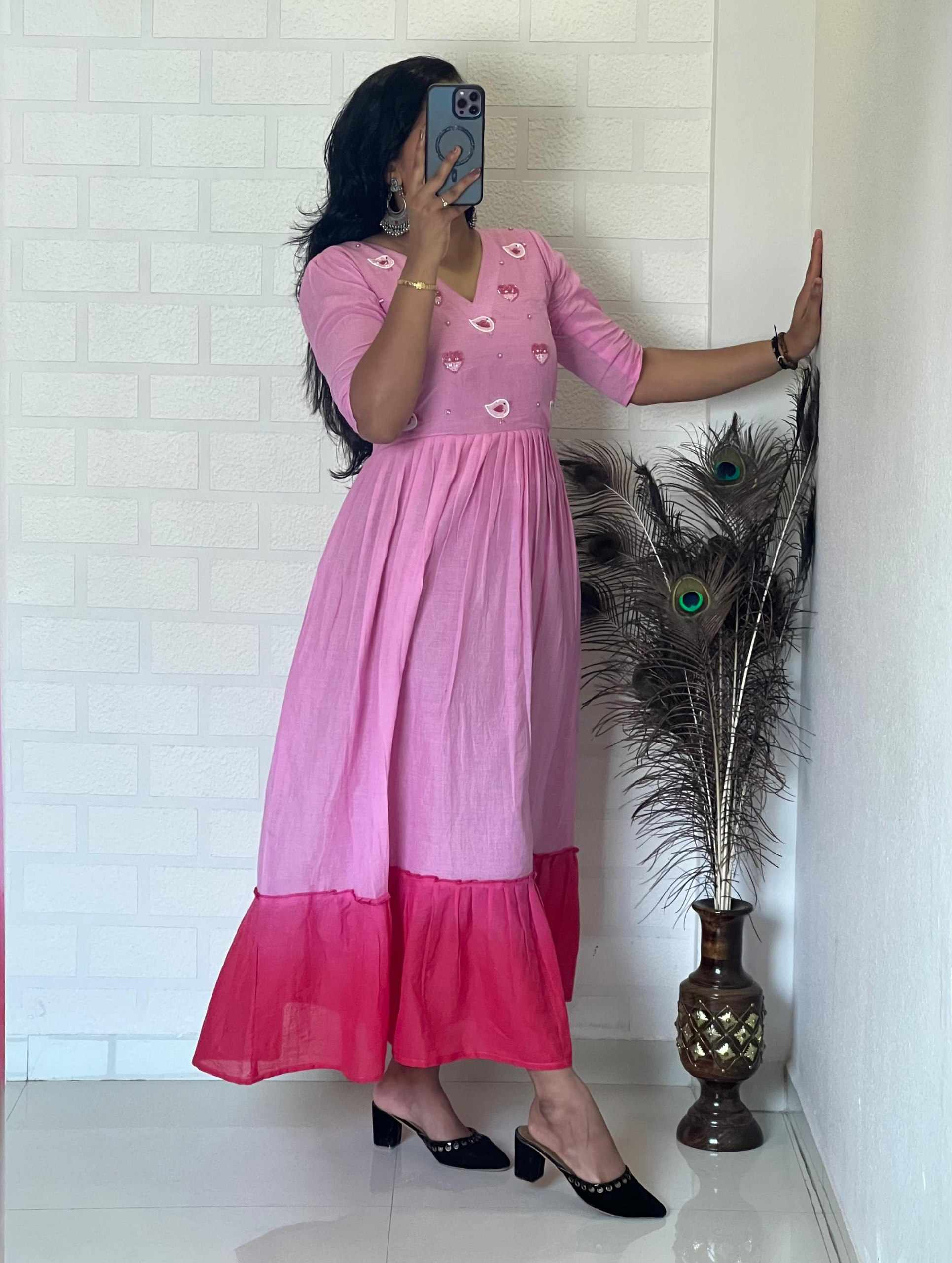 JKWH 998 Pure Fine Cotton Febric Embroidery Work A-line Kurti Set With Pocket